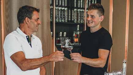 VaterErwinLeimgruberund SohnFelixhergestellt.Neben Ginentstehendortinzwischen auchWhiskyundRum.BrennmeisterErwinzeigtsichsichtlich erfreutüberdieAuszeichnung: „EinesolcheBewertunghätte ichnatürlichnichterwartet!Wir freuenunssehrdarüberundsind motiviertweiterspannendeDestillatezukreieren.“
