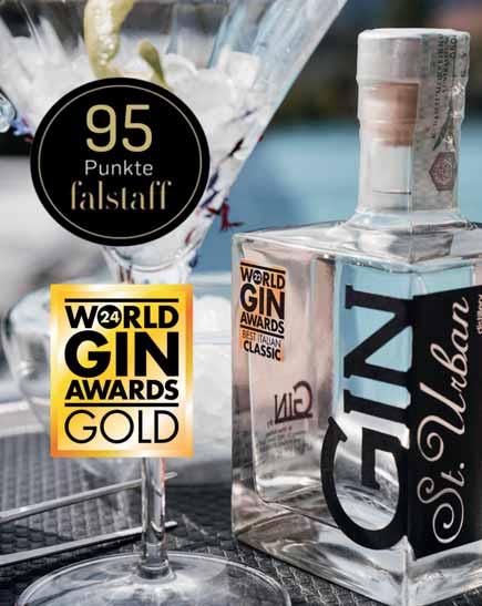 Mit95Punktenwurdeder St.UrbanGindergleichnamigenBrennereiSt.Urbanaus GirlanvoreinigenWochen zumFalstaff-Siegergekürtund durchdieinternationaleJury wiefolgtbewertet: „Glänzend,inderNaseduftend undfrischmitdeutlichenZitrusnoten.AmGaumensauberund klarmiteinerangenehmenNote vonWacholder,auchhierdominierenAromenvonZitrusfrüchtenundeineminzigeFrische. Langanhaltend. Eingroßartiger Gin!“ Fastgleichzeitigerhieltder St.UrbanGinbeim WorldGin AwardinLondon die Goldmedaille.DerGinwirdhandwerklichimFamilienbetriebvon