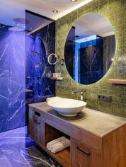 Das Herzstück des Umbaus istderspektakuläreSky-Spamit dem Skypool auf dem Dach, von dem aus sich der Blick in die Dolomiten wie ein endloses Panorama entfaltet. Trotz der knappen Bauzeit lief alles nach Plan. Besonders wichtig war der Familie Fischnaller die Zusammenarbeit mit erfahrenen Handwerksbetrieben aus der Region. Der neue Look des Luxushotels verbindet den gemütlichenalpinenLifestylemit moderner, verantwortungsbewussterArchitektur.