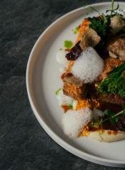 das Angebot. Am Abend entfaltet sich die Vielfalt der Küche in fein abgestimmten Menüs, die Bodenständigkeit und Ra nesse verbinden und den regionalen Ursprung der Zutaten in den Mittelpunkt stellen.