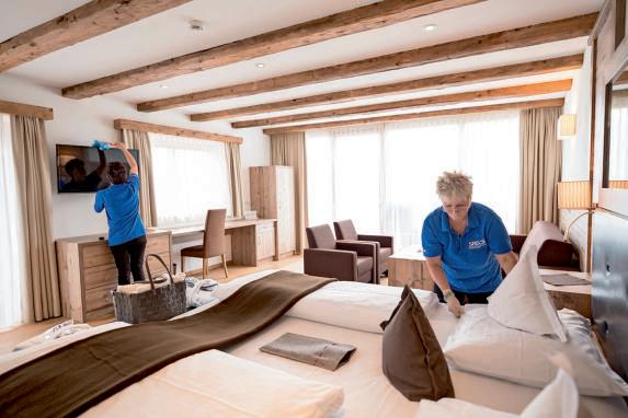 DieHotelreinigung,oftauch alsHousekeepingbezeichnet, wirdebenfallsvonspezialisiertenDienstleisterndurchgeführt. DiesumfasstdiegründlicheReinigungderGästezimmersowie deröffentlichenBereichedes Hotels.EinwichtigerAspektist auchdieHygieneindenSpa-BereichensowieinSchwimmbädernundSaunen.Nacheiner saisonalenSchließung,diehäufigmitRenovierungs-undUmbauarbeiteneinhergeht,istzudemeineumfassendeGrundreinigungerforderlich.