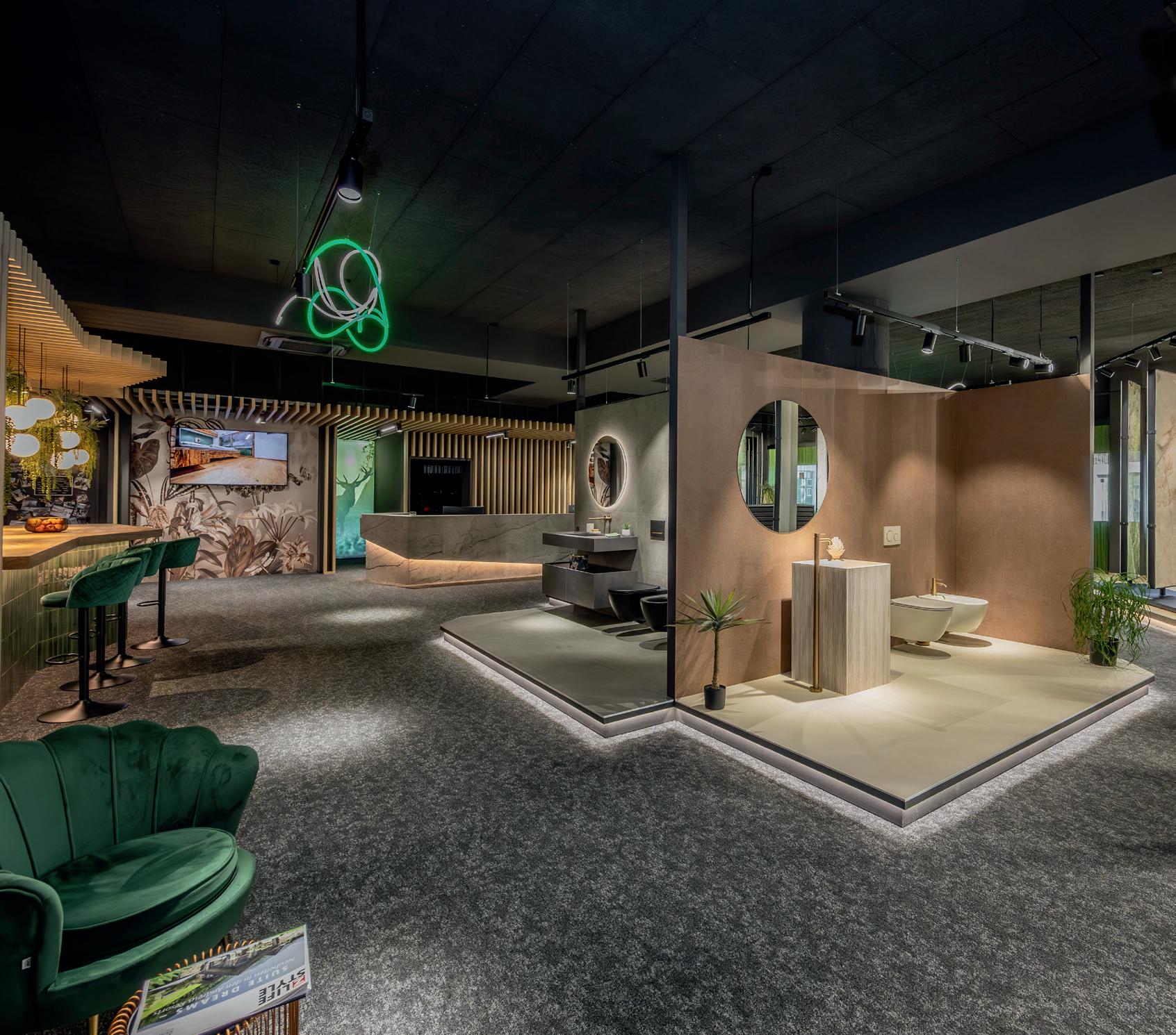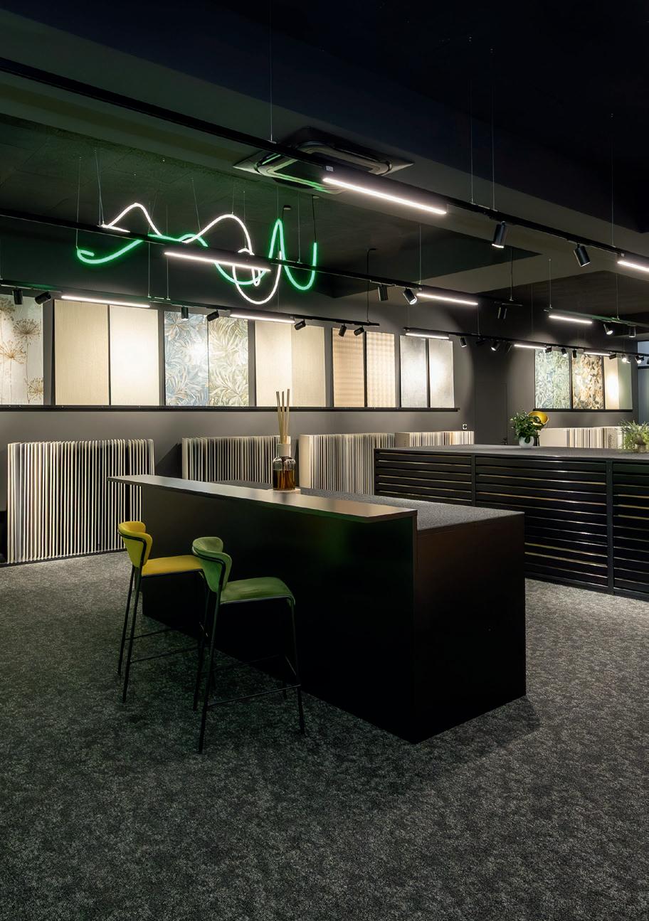 Ein vielseitig nutzbarer Showroombereich, der Design, Struktur und Materialwirkung gekonnt in Szene setzt.