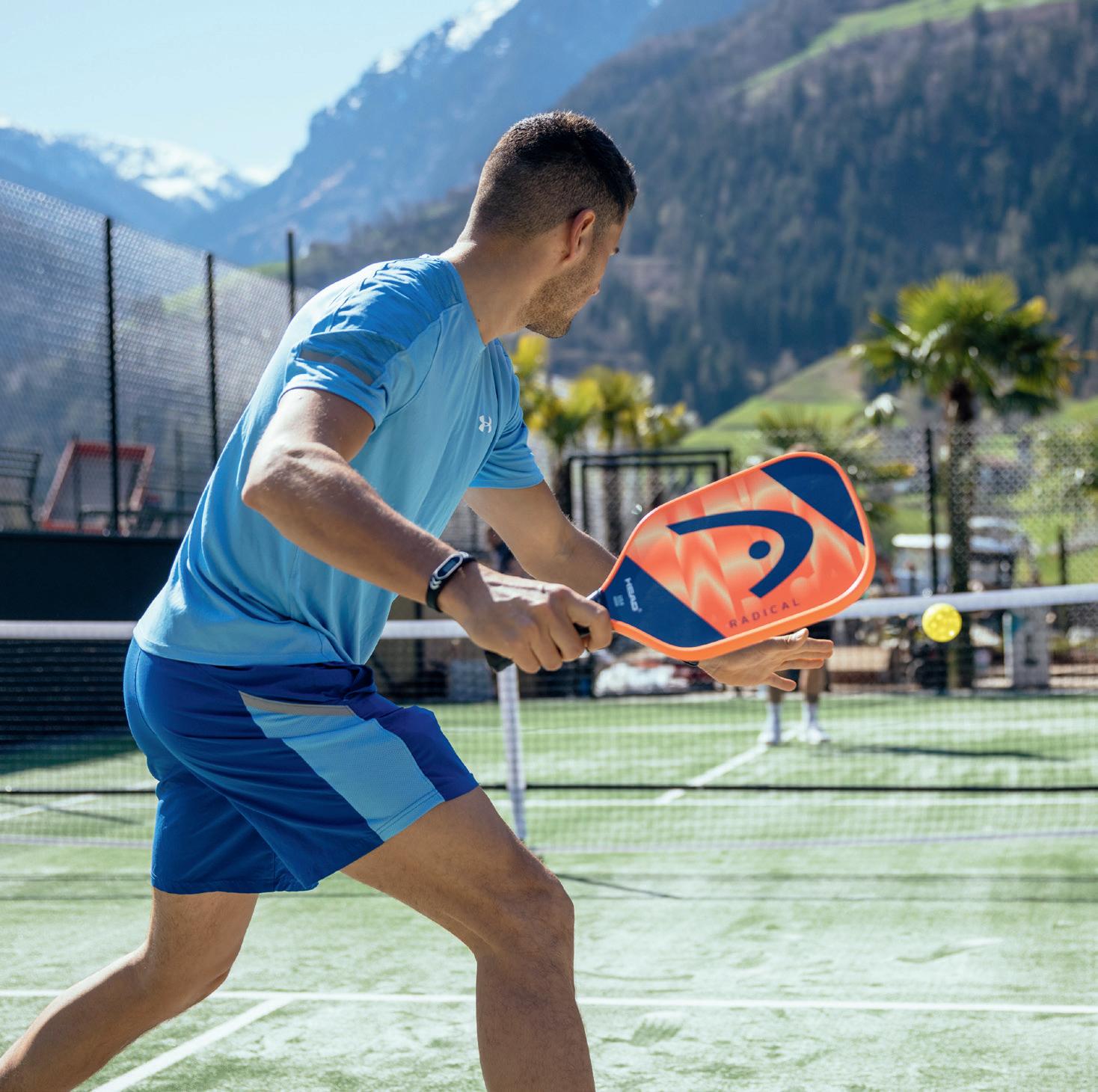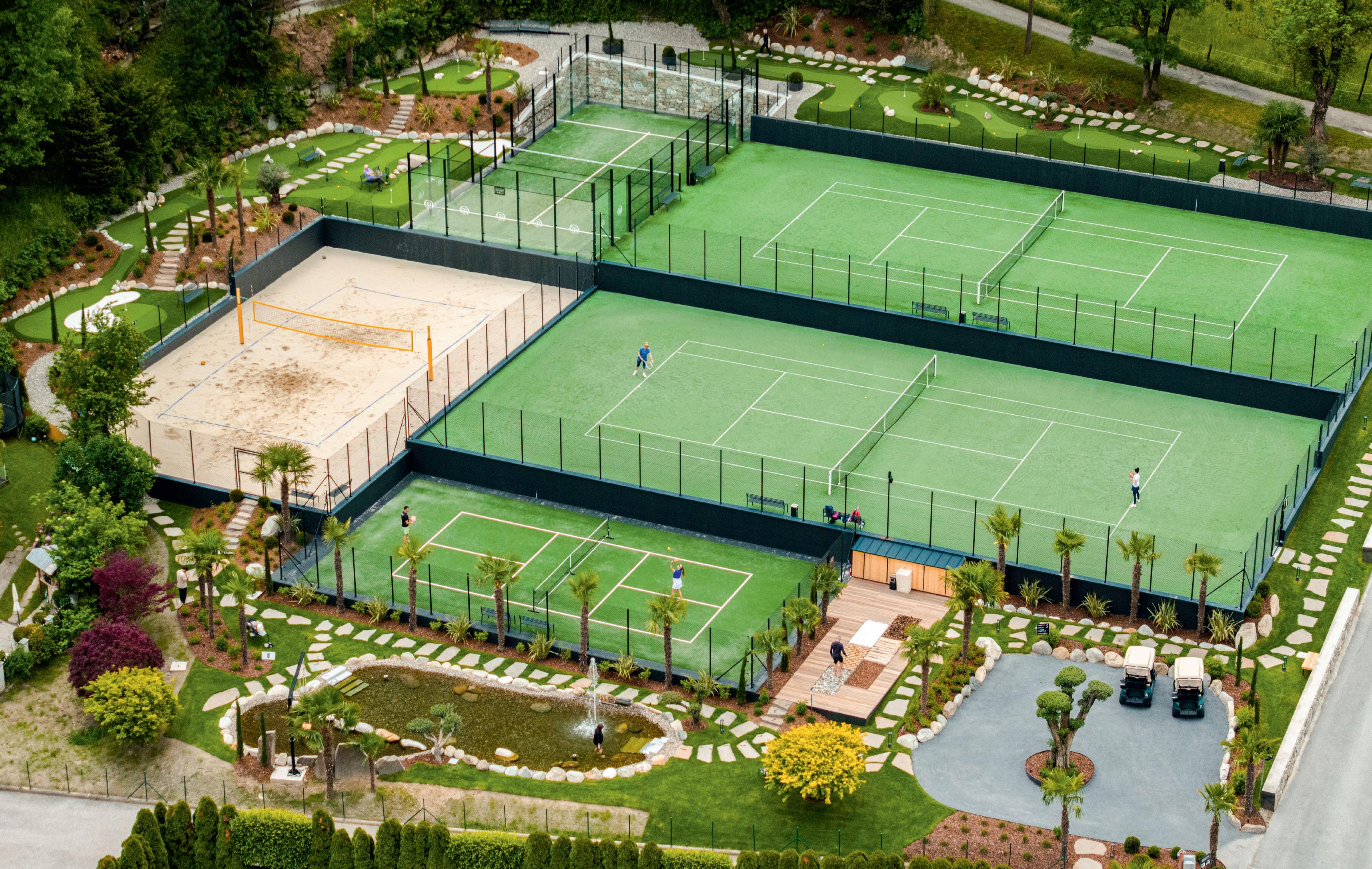 Pickleballplatz, ein Beachvol leyballfeld mit Badminton 9-Loch-Minigolfübungsanlage sowie ein Kneipp-Parcours im Palmengarten. „Beson ders Padel und Pickleball erfreuen sich aktuell als Trendsportarten großer Beliebtheit – und wir gehen im Hotel ganz bewusst mit dieser Entwicklung mit“, sagt Juniorchef Daniel Fink.