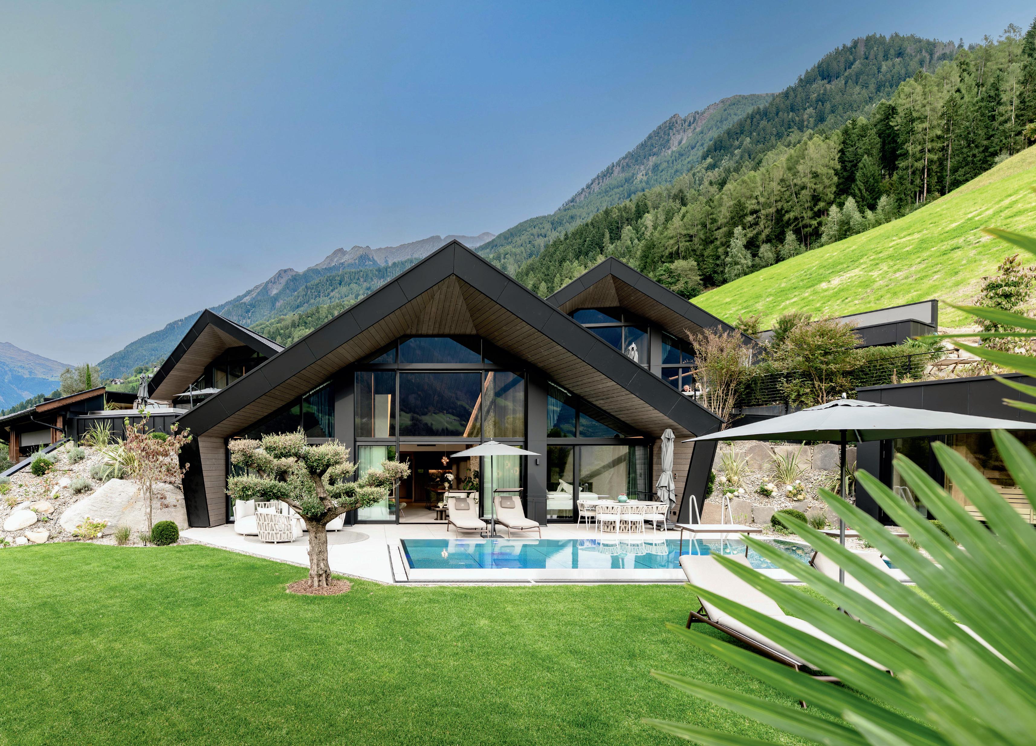 Die schöne Bergland schaft des Passeiertals bietet seit jeher die perfekte Kulisse für entspannte Urlaubstage. Hier, umgeben von Wiesen, Wäldern und den Gipfeln der Texelgruppe, haben die Andreus Resorts ihr Angebot erweitert: Nach Bauabschluss im Juli 2025 bereichern insgesamt 12 neue Zimmer und 3 exklusive Villen das Portfolio des 5-Sterne-Hotels. Mit modernen Architekturkonzepten, di rektem Naturbezug und hochwertigen Materialien von lokalen Partnern und Firmen aus dem Passeiertal sowie ganz Süd tirol entsteht ein Wohngefühl, das Luxus und Geborgenheit verbin det. Die Neuerungen stoßen bei