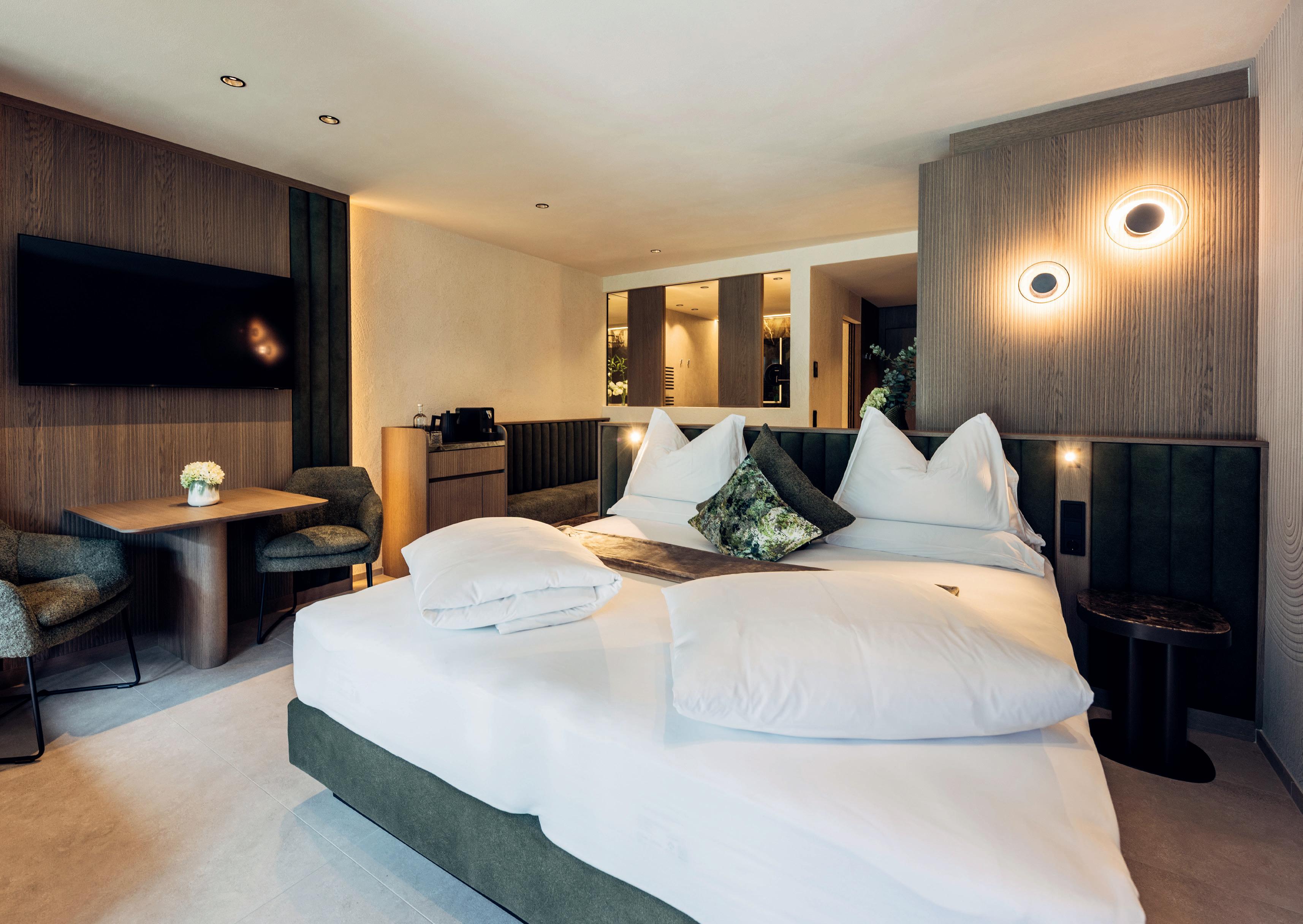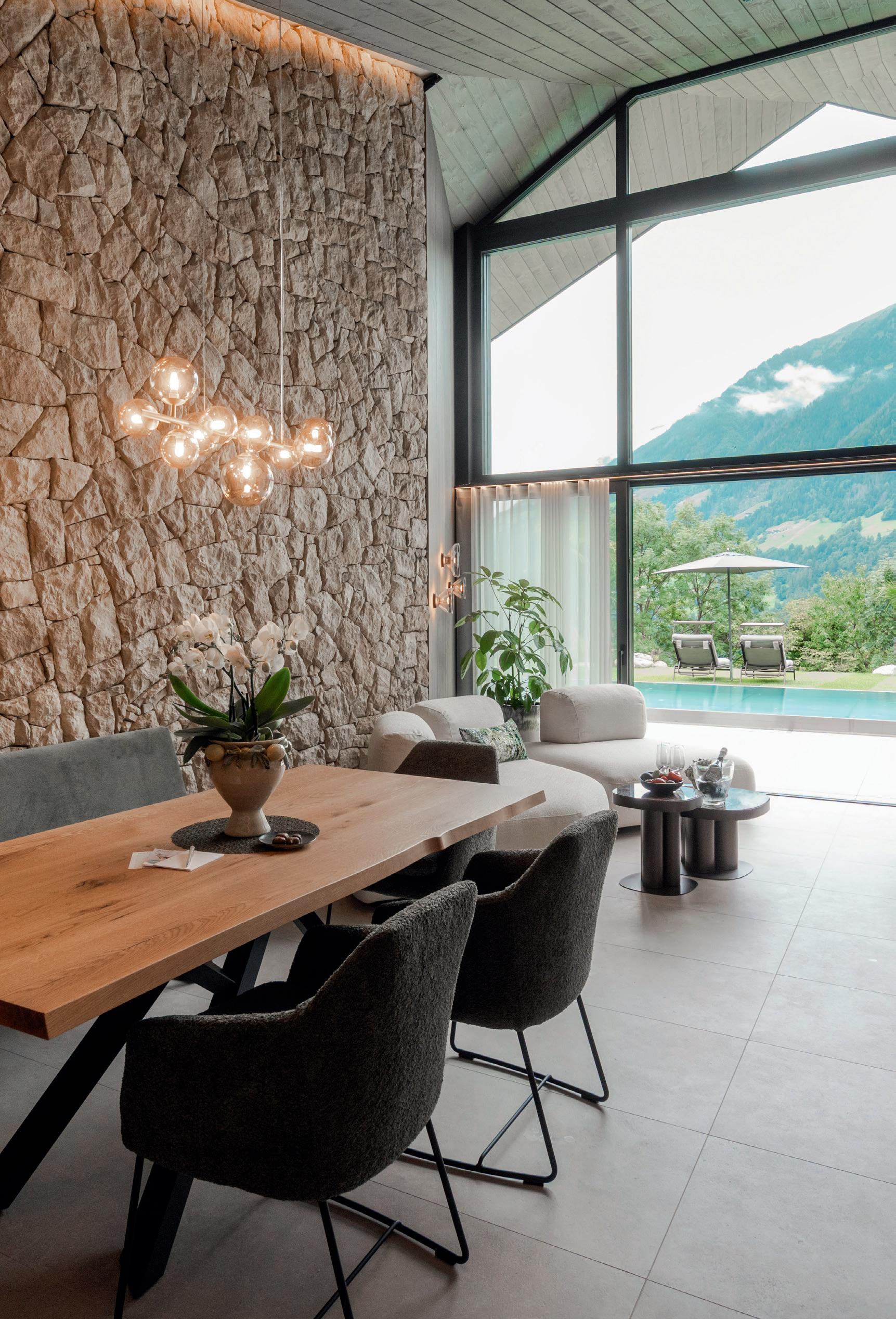 höchsten Komfort bieten und gleichzeitig einen direkten Bezug zur Natur ermöglichen“, erklären sie. Die Familie legt besonderen Wert darauf, dass jedes Detail stimmt – vom Bodenmaterial über Möbel bis hin zur Ausstattung der Bäder. Die hochwertige Einrichtung stammt von lokalen Partnern und Unternehmen aus dem Passeiertal sowie ganz Südtirol, um Qualität, Nachhaltigkeit und Regionalität zu verbinden.
