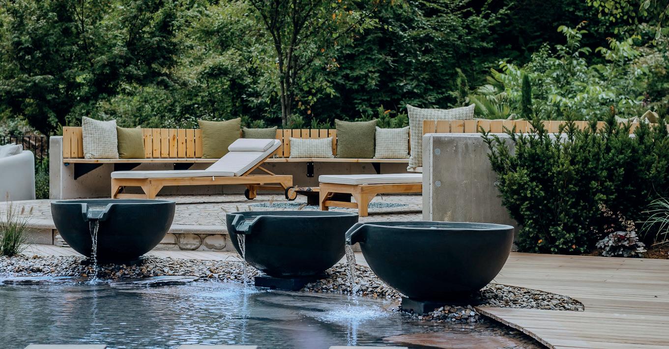 Entspannung und innere Ruhe. Der angrenzende Relaxgarten rundet das Konzept ab und lädt dazu ein, innezuhalten, Kraft zu schöpfen und den Alltag weit hinter sich zu lassen.