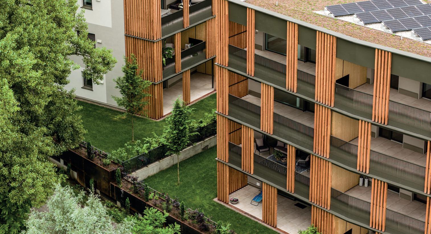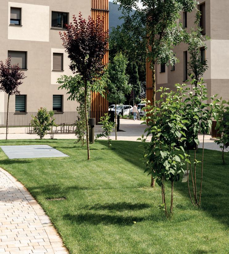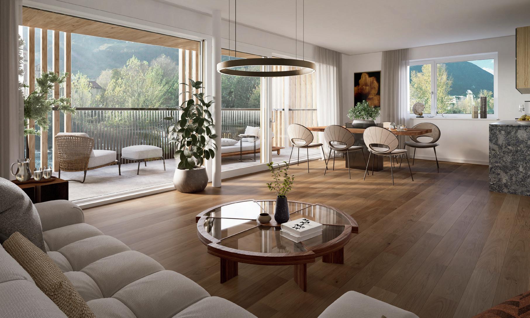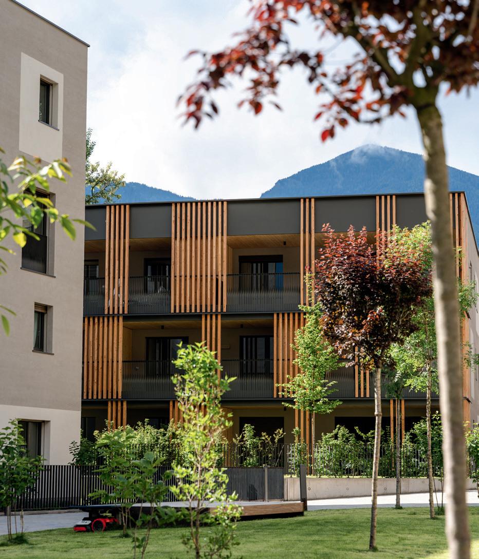 konstruktive Zusammenarbeit aller Beteiligten: „Die besondere Lage direkt am Eisack verlangte nach einem sensiblen Umgang mit Natur und Raum. Wir haben auf höchste ökologische Standards gesetzt – Klimahaus A Nature –, auf schadstofffreie Materialien, unbehandeltes Holz und atmungsaktive Baustoffe.“ Neben Qualität und Nachhaltigkeit lag der Fokus auch auf Wohnkomfort, großzügigen Loggien, Privatgärten und einem