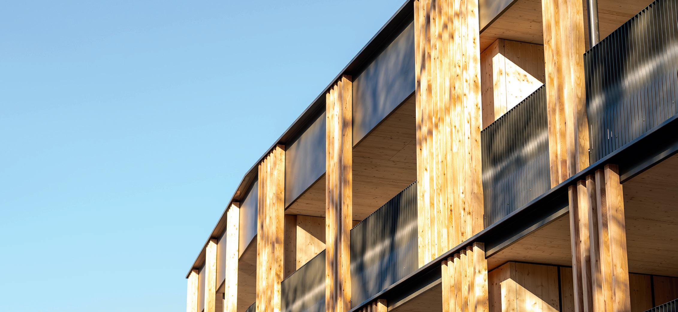 Klare Linien und warme Holzfassaden für nachhaltiges und komfortables Wohnen.