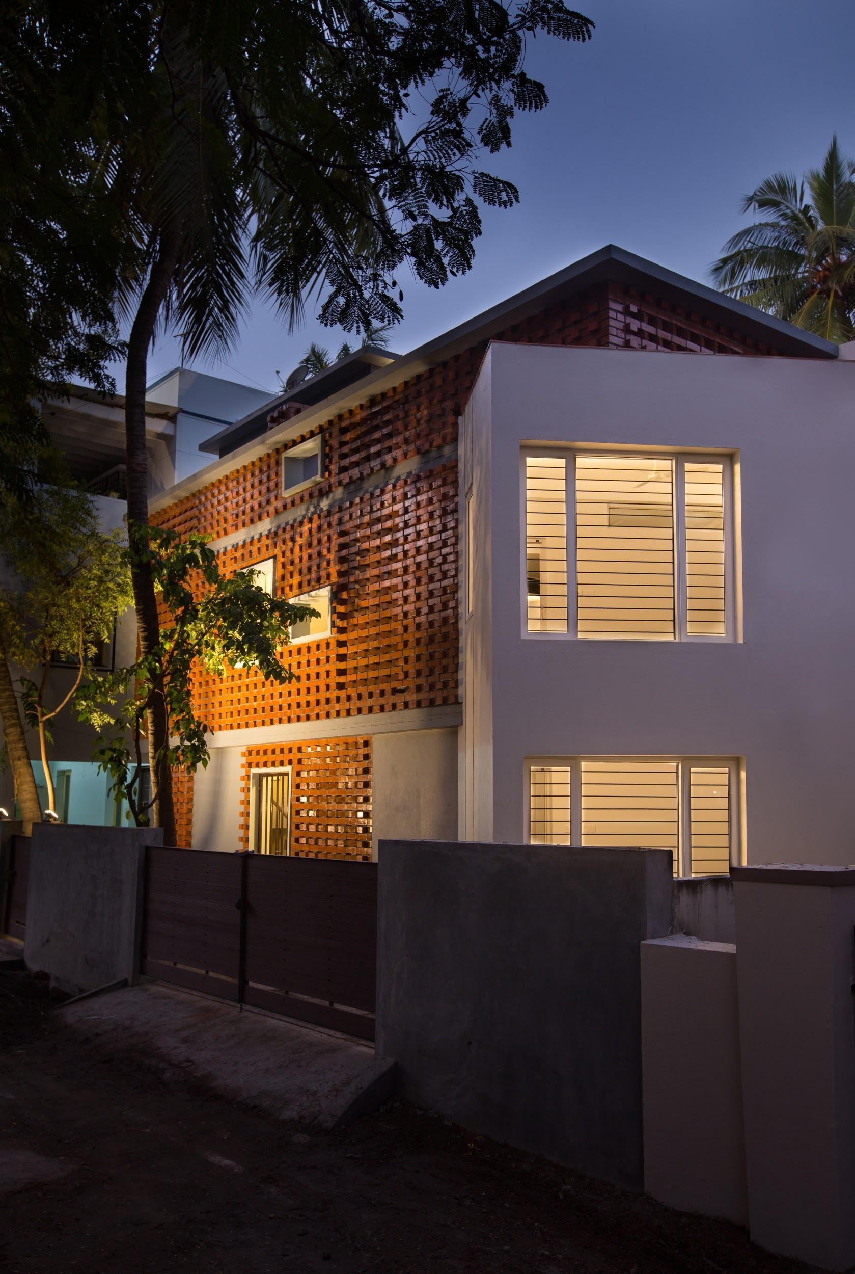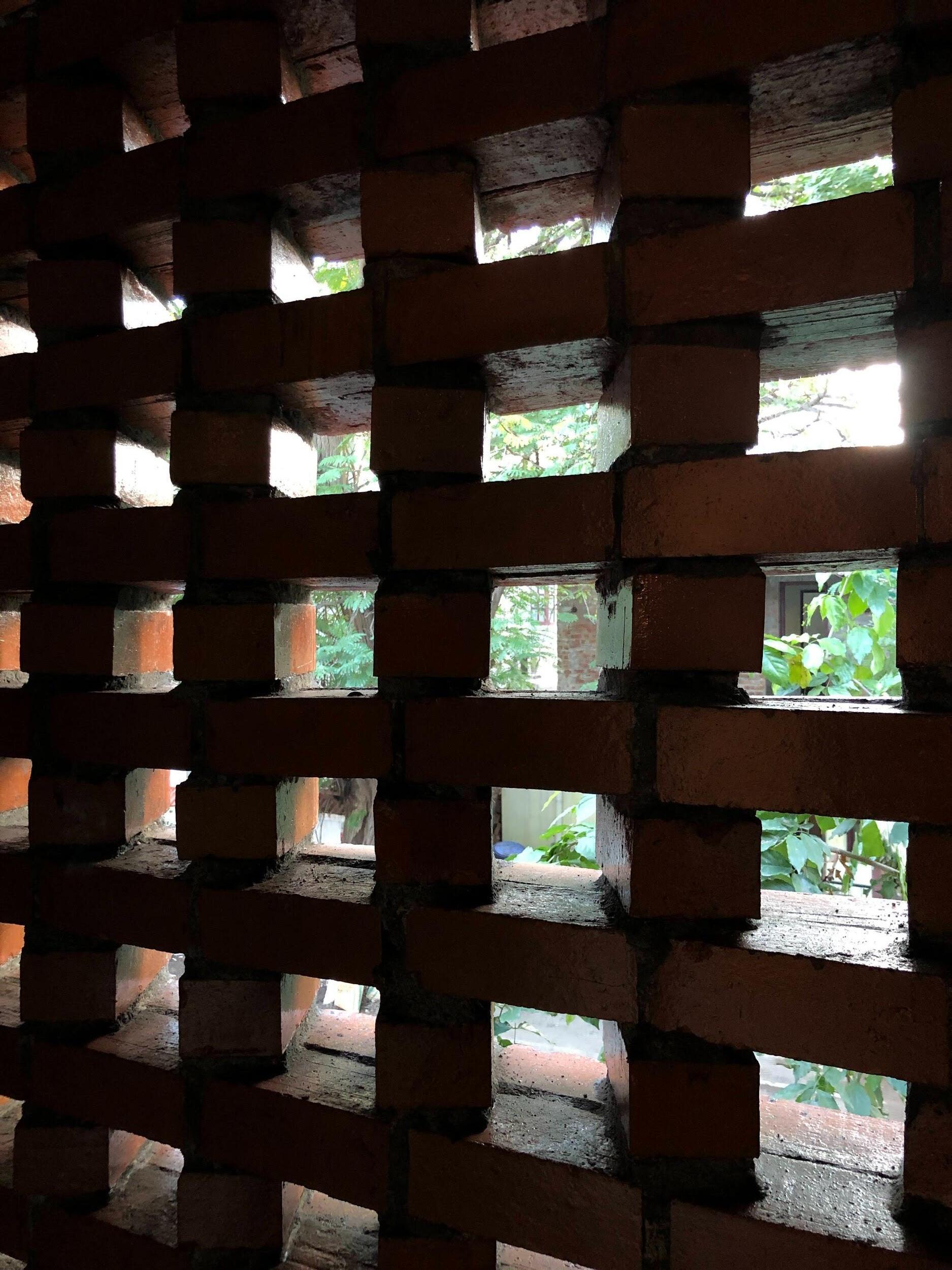 House of 2 Palms was a 40 year old dilapidated brick bungalow that was repurposed into a classic and minimalist residentialcomplex.Theprojectservestobe an example of minimising the construction wastage and reducing the carbon emissions through effective reuse of existing building materials.Theinteriorsarepredominantlyin mutedtones,thefacadeofthestructurehas a 30’ foot long perforated Brick wall that wraps up the main staircase and the veranda’s of both the units. The Brick Jali is oriented in such a way to drive in the predominantwindsfromNEandSEdirections throughout the year. Furthermore, the brick screen along with the one foot thick walls help regulate the inner temperature, thus aiding in reduced electricity consumption. The result is a timeless structure that wears theheartofconstructiononitssleeve-which isandalwayswillbethebrick!