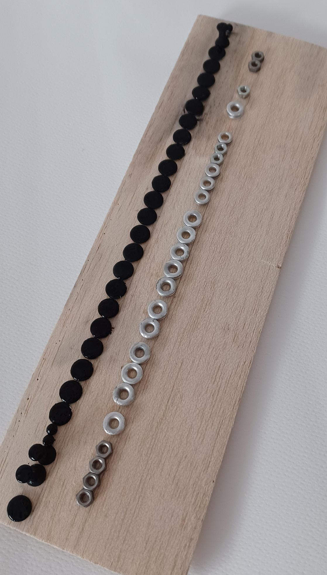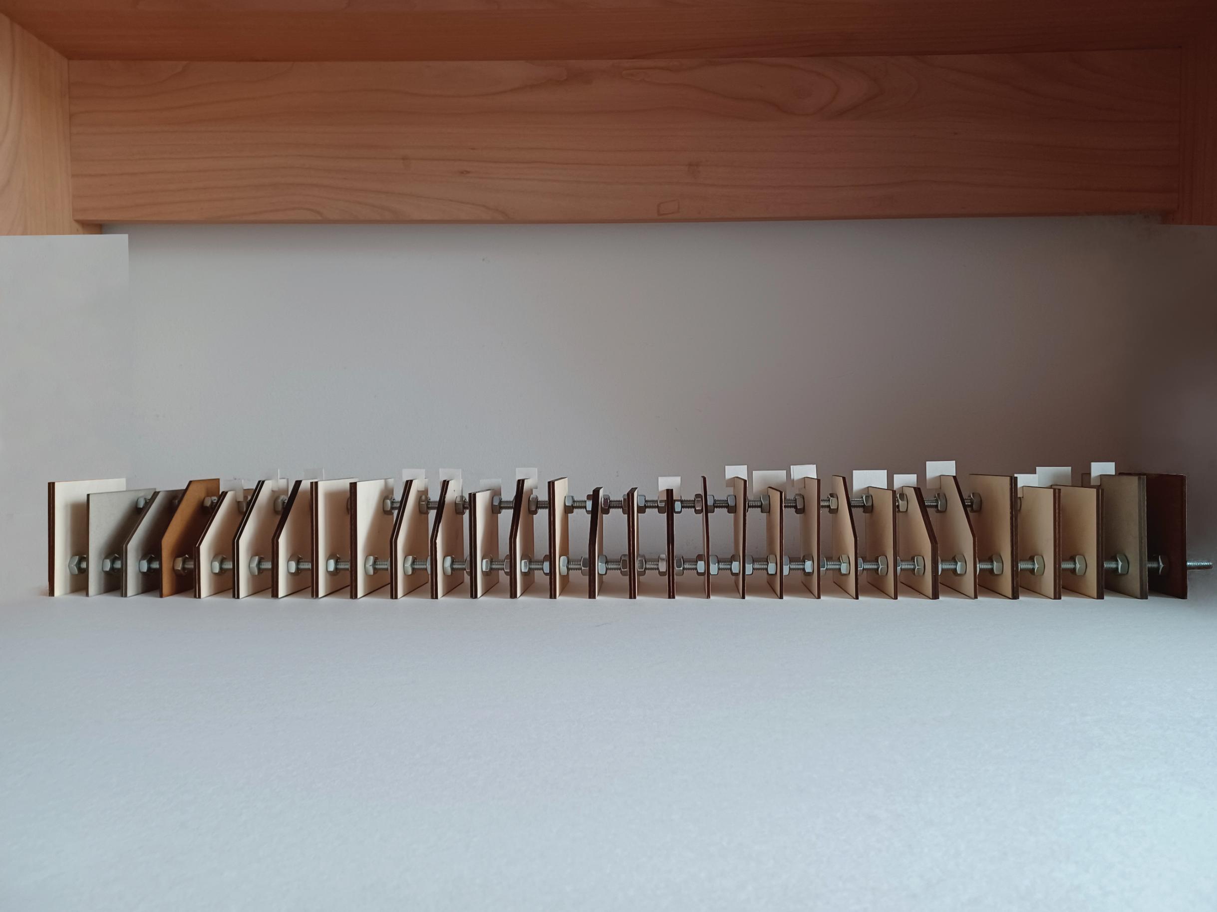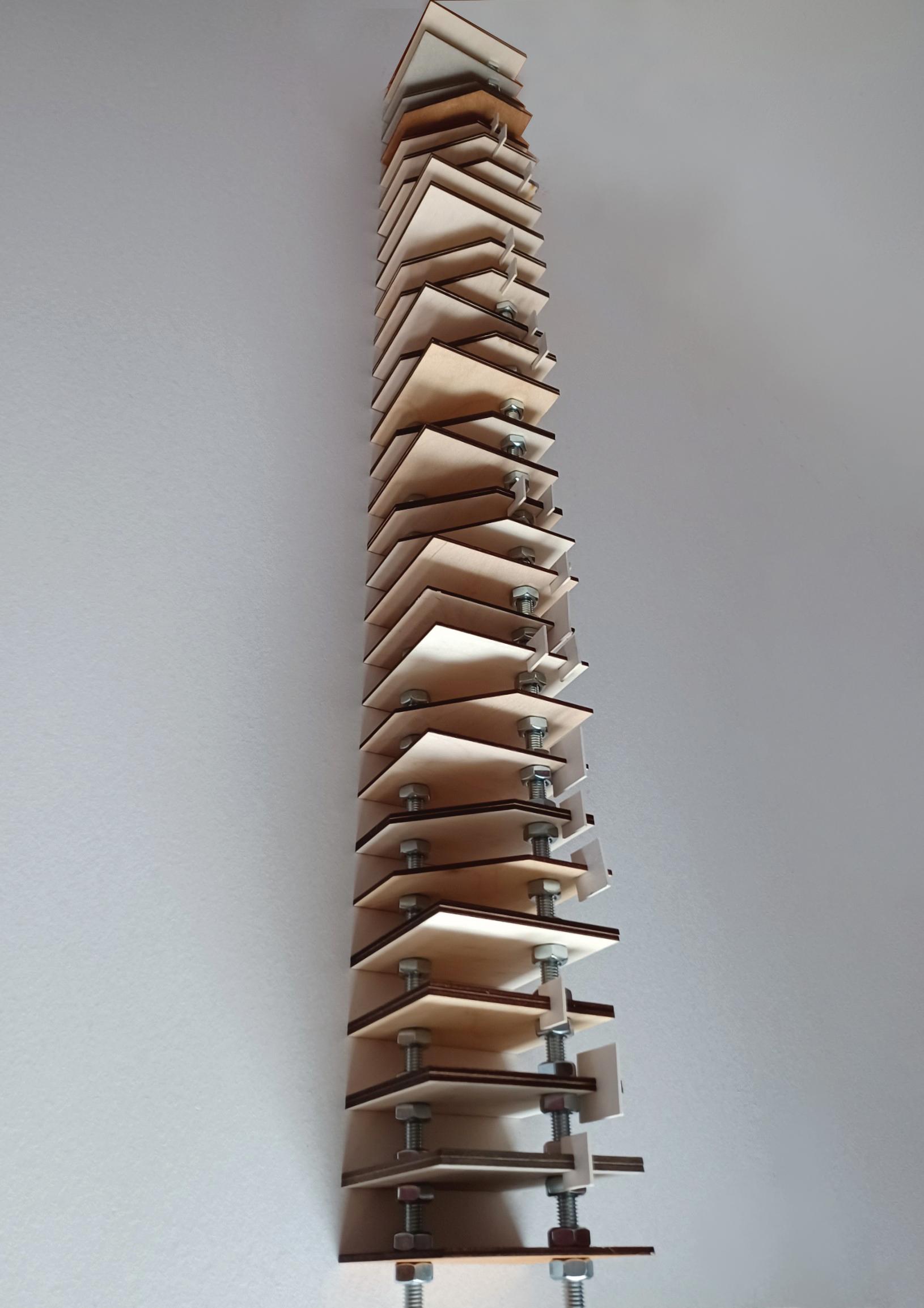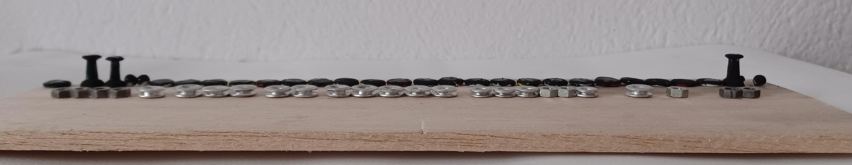 A total of 50 pieces were required for the construction, with a maximum dimension of 10cm x 10cm and a thickness of 3mm for the snapshots. Additionally, 19 pieces of white cardboard were used for the extra elements, with dimensions of 2cm x 2cm, 2.5cm x 2.5cm, and 3cm x 3cm, depending on the case, and a thickness of 1.5mm.