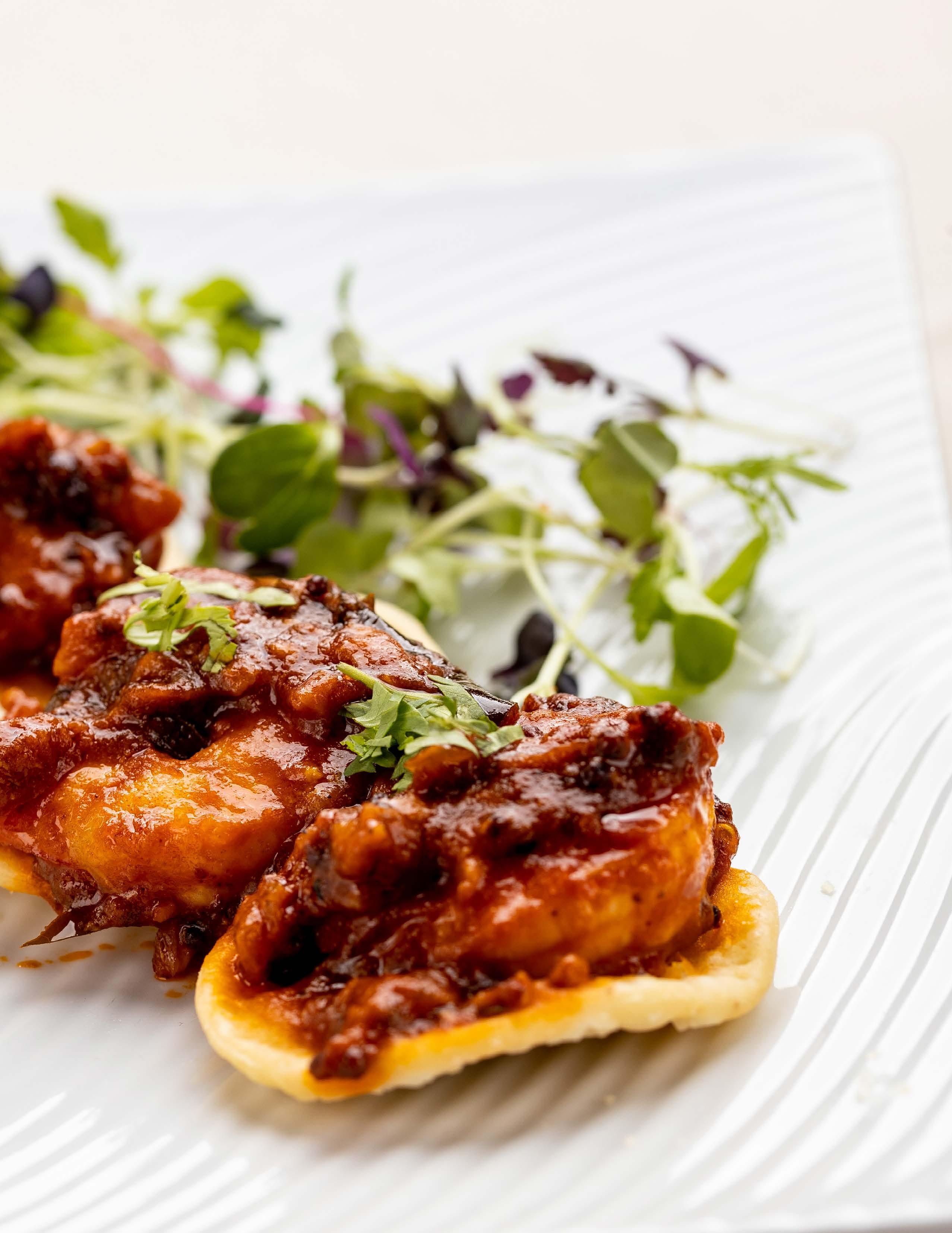 DRS: I would suggest our Dahi Kebab, Hung yogurt, spiced, pan seared, over mustard tempered raw slaw; Shrimp Balchao, spicy shrimp in a tangy sauce; and Vitamin bhel, millet with raw mango, gram crisps, mint and tamarind sauces.