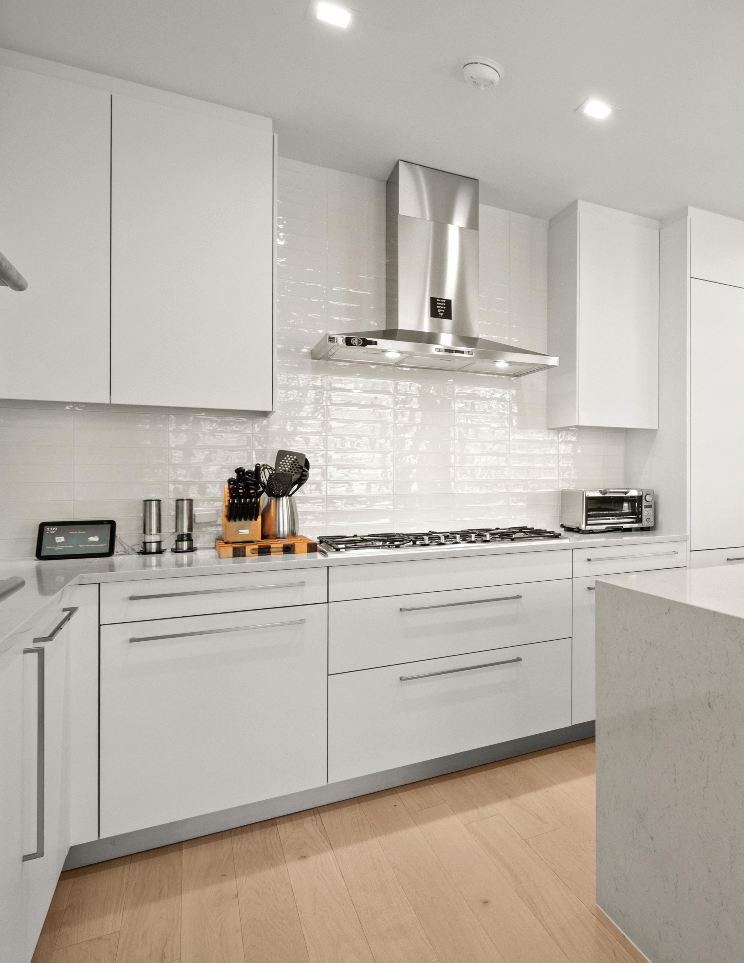 Quartz counters grace the center island like a waterfall, ready for your finest meal or quick snack to be enjoyed in the adjacent living area. And no worries if you are running out in the morning with no time for breakfast or that second coffee - pretty soon it will be just steps away from your building.