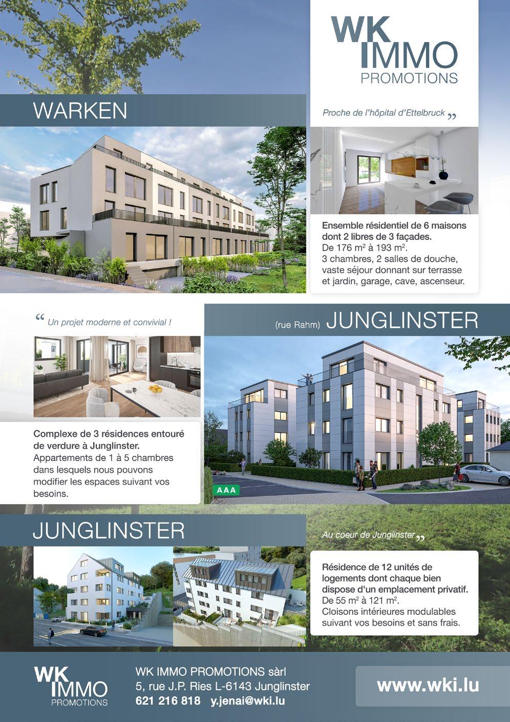 8 36 Les prix de l'immobilier de chaque région du Luxembourg Dossier vente Les prix de vente des maisons et des appartements 24 Les tendances Evolution de l'offre immobilière 8 Dossier neuf Les prix de vente des appartements neufs 28 Prix par commune Fourchettes des prix de vente pour chaque commune 18 Dossier commercial Loyers et prix de vente des surfaces commerciales et bureaux 32 Dossier location Les loyers des maisons et des appartements 20