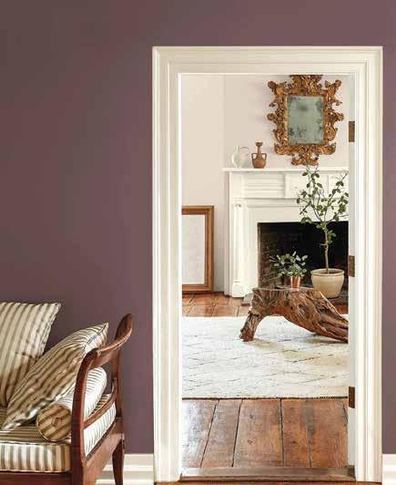 Hale Navy is classy and timeless, making it a go-to blue for homeowners and interior designers. Use it as an all-over color in a sophisticated library with leather furnishings or as a bold contrast against crisp white trim and board-andbatten paneling. Complement it with metallic finishes for a truly regal feel.