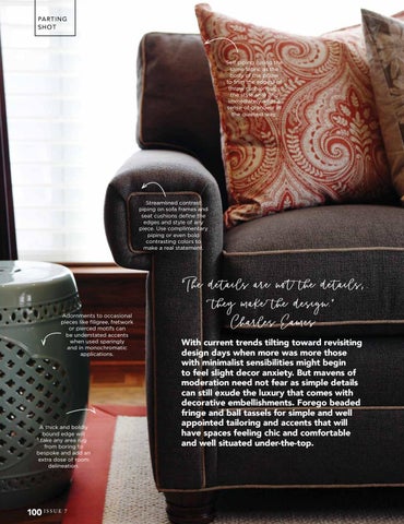 With current trends tilting toward revisiting design days when more was more those with minimalist sensibilities might begin to feel slight decor anxiety. But mavens of moderation need not fear as simple details can still exude the luxury that comes with decorative embellishments. Forego beaded fringe and ball tassels for simple and well appointed tailoring and accents that will have spaces feeling chic and comfortable and well situated under-the-top.