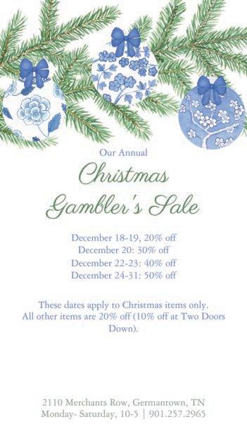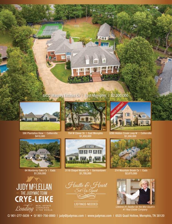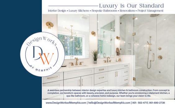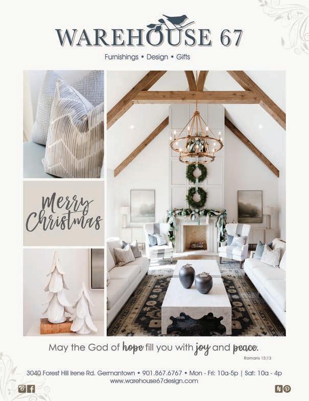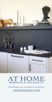 Call 901.684.4155 or subscribe at athomemms. com . Annual subscription rate: $19.95. Single copy price: $4.99. At Home Memphis & Mid South is published 12 times a year. Postmaster: Send address changes to At Home Memphis & Mid South , 7776 Farmington Blvd, #1321 Germantown TN 38183. We make every effort to correct factual mistakes or omissions in a timely and candid manner. Information can be forwarded to Trip Monger; At Home Memphis & Mid South , 7776 Farmington Blvd, #1321 Germantown TN 38183 or to tmonger@athomemms.com.