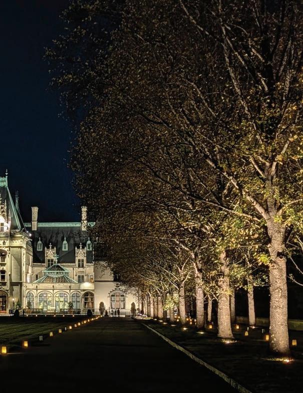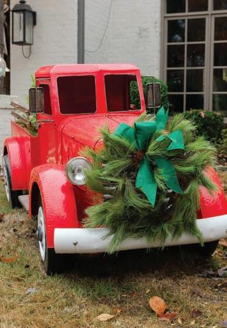 John Mark Sharpe, owner of John Mark Enterprises in Germantown, works his magic in and around the house, creating a new masterpiece each year. The Chandlers are happy to let Sharpe have free rein, giving him only minimal parameters. “We just ask him to use traditional colors: red, green, silver and gold,” says Brittany. “[The design] is always a complete surprise! He repurposes some things from year to year, but adds new ribbon so it's always fresh and different.”