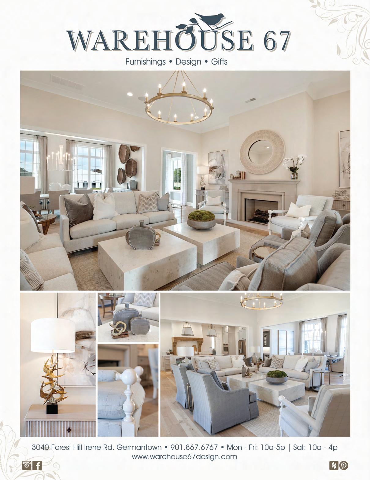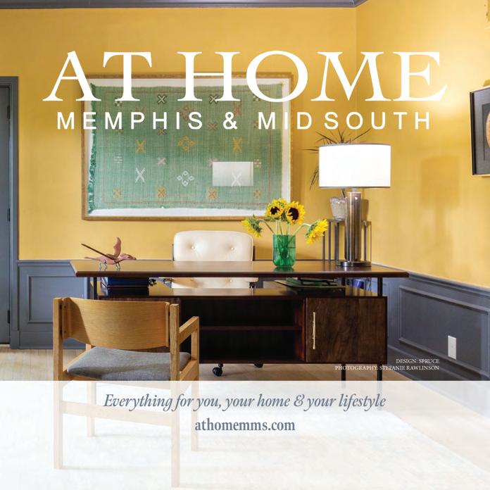 Call 901.684.4155 or subscribe at athomemms. com . Annual subscription rate: $19.95. Single copy price: $4.99. At Home Memphis & Mid South is published 12 times a year. Postmaster: Send address changes to At Home Memphis & Mid South , 7776 Farmington Blvd, #1321 Germantown TN 38183. We make every effort to correct factual mistakes or omissions in a timely and candid manner. Information can be forwarded to Trip Monger; At Home Memphis & Mid South , 7776 Farmington Blvd, #1321 Germantown TN 38183 or to tmonger@athomemms.com.