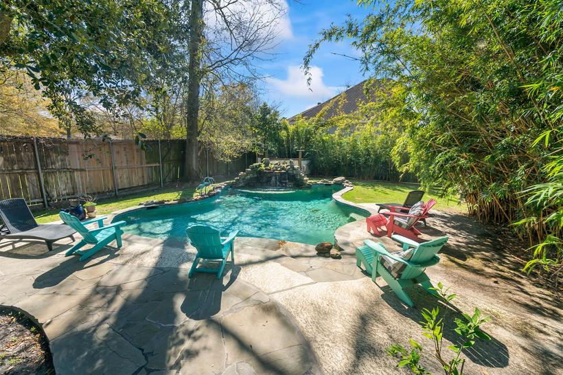 The exquisitely remodeled Primary bath and bedroom even have heated floors. 2 Br, 1 ½ baths down & 2 Br, 1 ½ baths upstairs & a laundry room on both floors. Beautifully remodeled kitchen & butler’s pantry have custom wood cabinets, quartz countertops, stainless appliances, and commercial quality gas range. Upgrades also include brand new roof, new HVAC upstairs, heart pine flooring, gorgeous heated gunite pool with waterfall, rear deck, pavilion and so much more.