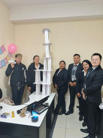 Durante el mes de noviembre, tanto docentes como administrativos fueron dividos en equipos para construir una torre utilizando únicamente papel reciclado. Ésta actividad motivaba a la reflexión sobreloquesignificatrabjarenequipoysolucionarproblemas.Algunasdelasreflexionesfueron: Eltrabajoenequipo—basadoenlacomunicación,lacooperaciónylaconfianza—permitesuperar desafíosyalcanzarmejoresresultadosaprovechandolasfortalezasdecadaintegrante