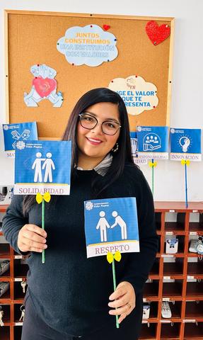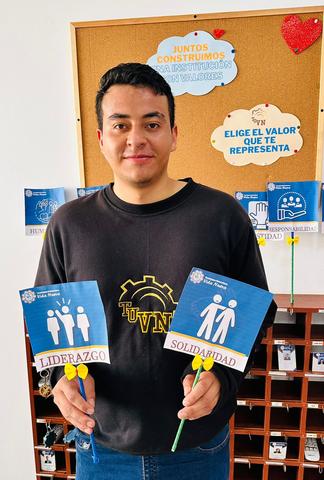 Comopartedeesteproceso,algunosmiembrosdelequipoTUVNseacercaronalascarteleras institucionalesparatomarseunafotografíajuntoalvalorquemáslosidentifica Estaactividad no solo fortaleció el sentido de pertenencia, sino que también permitió visibilizar cómo cada integrante de nuestra comunidad encuentra en los valores institucionales una inspiración personalyprofesional.