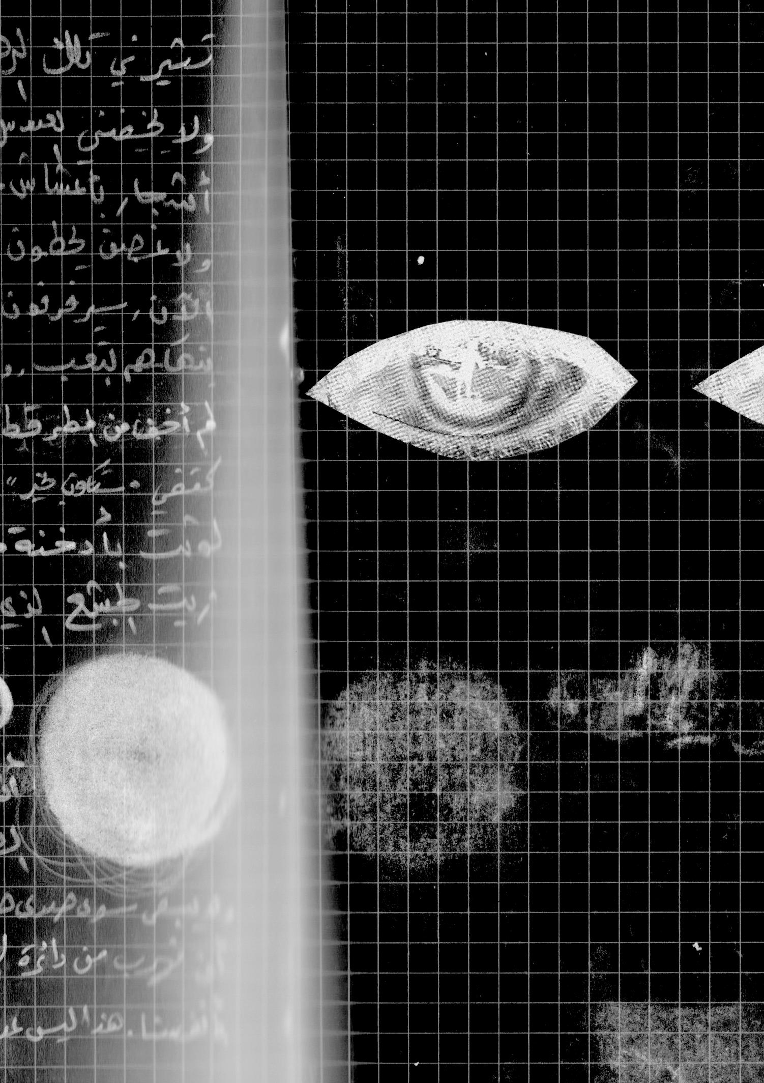 Mohammad Alfaraj’s (b. 1993 in Al Hassa, KSA, where he lives and works), practice centers around his exploration of the relationship between forms and concepts, is visible through superimposed stories in his photographic collages, regrouping and contrasting fiction and non-fiction subjects. Alfaraj’s work also often uses natural materials found in his hometown and combines them with children games and stories from people working the land, as an attempt to create states of co-existence between man and nature with an undertone of hope. A socio-environment activist at heart, his short documentary Lost, 2015 (which was awarded first place in the student category at the Saudi Film Festival), captures the latent state of the notion of temporality for the stateless Arabs living as refugees in their place of birth, and the dehumanizing effect this plays. This “un-homely” context portrays the poisonous beauty of nature when lived as a nemesis under political paralysis.