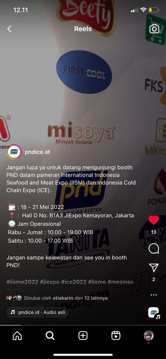 I also have experience as a committee in PND Ice Making System exhibition events at the IISME Expo as a social media team.