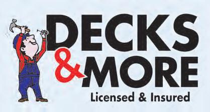 770.235.6929 | decksandmore.biz We design a plan that best suits your needs, and create your relaxing retreat! Creating Your Outdoor Oasis.SM CUSTOM DESIGN PLANS. PROFESSIONAL CRAFTMANSHIP. 20 YEARS EXPERIENCE Additions • Bathrooms Basements Decks & Sunrooms Outdoor Kitchens Screened In Porches • Patios 2022 BEST OF BEST DECK DESIGN/ BUILD COMPANY VOTED BEST DECK DESIGN/ BUILD COMPANY SINCE 2016 Atlanta’s most award-winning design/build deck company TM my Vinings/Smyrna of2023 Best Deck Design/Build Company