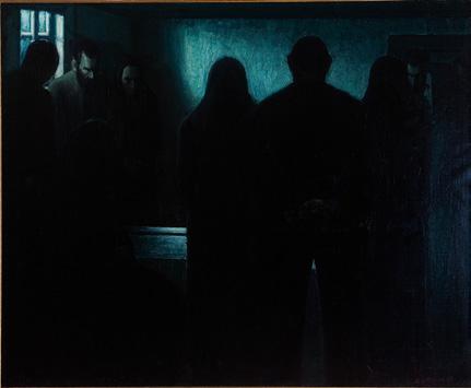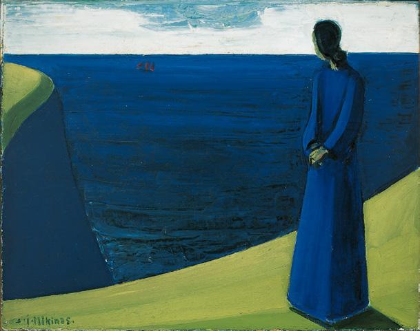 Sámal Joensen-Mikines (1906–1979) is the first major painter in Faroese fine art. In him Faroese art gains its own voice; ocean and villages, funerals and whale hunts are depicted in a forceful expressionistic naturalism that encompasses both romantic and symbolic touches. He combines an influence from Edward Munch with a tight objectivity and weighty quality in a personal – and Faroese – expression. Mikines was educated in Denmark, where he also lived for most of his life and where he received his nickname, a reference to his home island, Mykines.
