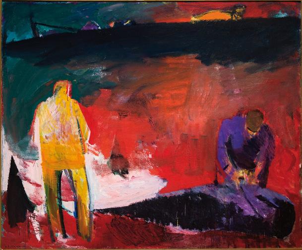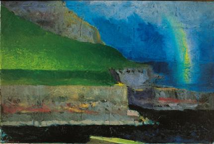 Ingálvur av Reyni (1920–2005) was the first Faroese abstract painter. During his long life and with French art as his leading star, he was able to renew himself as few others can. A colourful naturalism was replaced with a dark, brooding cubism around 1960. An abstract expressionism, dominantly black and dramatic, dealing with nature and people, body and colour, followed in the 1980s. After returning home on finishing his education in Denmark, Ingálvur av Reyni lived his whole life in Tórshavn.