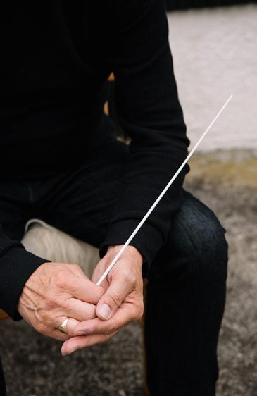 Heima tekur hann gleðiliga hond í, men vil ikki siga, at hann svingar dirigentstavinum, tá um tað húsliga ræður.