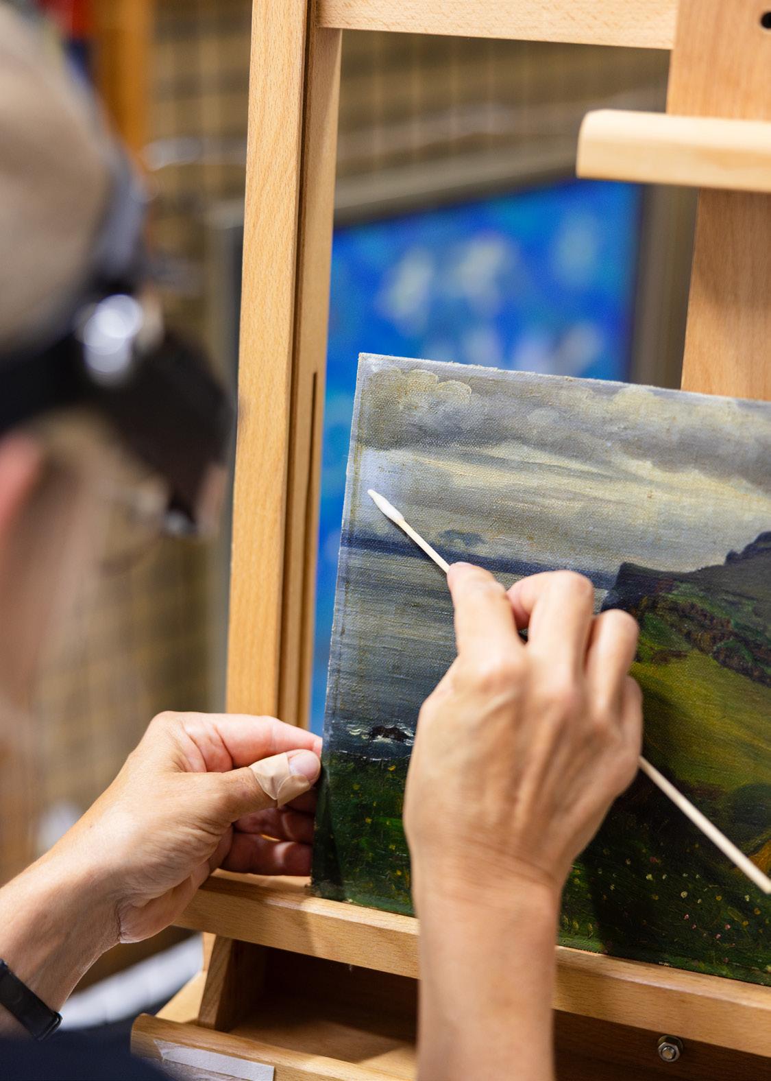 18 Konservatorar reinsa listina á Listasavni Føroya Conservators restoring Faroese art