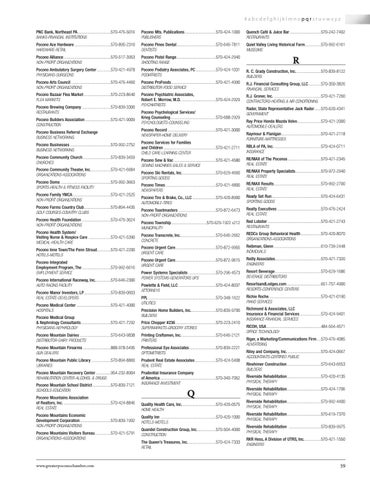 RICOH, USA ...................................................484-554-4571 OFFICE TECHNOLOGY Riger, a Marketing/Communications Firm....570-476-4085 ADVERTISING Riley and Company, Inc. ...............................570-424-0667 ACCOUNTANTS-CERTIFIED PUBLIC Rinehimer Construction................................570-643-6653 BUILDERS Riverside Rehabilitation................................570-420-4135 PHYSICAL THERAPY Riverside Rehabilitation................................570-424-1706 PHYSICAL THERAPY Riverside Rehabilitation................................570-992-4400 PHYSICAL THERAPY Riverside Rehabilitation................................570-619-7370 PHYSICAL THERAPY Riverside Rehabilitation ..............................570-839-9975 PHYSICAL THERAPY RKR Hess, A Division of UTRS, Inc. ...............570-421-1550 ENGINEERS