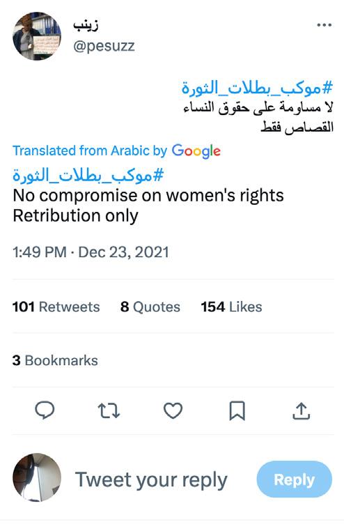 ATLANTIC COUNCIL ٢٠٢٢ ٢٠١٩ ،نادوسلا في ةرقتسم يرغلا تامولعلما ةئيب 7 ةرتف رادم لىع ةيعمقلا ينطولا رمتؤملا بزح ةموكح تضرع نوناقلا ىطعأ .زييمتلاو عمقلا نم دوقعل تاينادوسلا ءاسنلا اهمكح ةطرش مساب اضيأ ةفورعملا ،ماعلا ماظنلا ةطرشل ١٩٩١ ماعل يئانجلا وأ قئلالا ريغ سابللا« ببسب صخش يأ لاقتعا يف قحلا ،قلاخلأا عيمج لىع نوناقلا قيبطت ةيناكمإ نم مغرلا لىعو 36».يقلاخلأا ريغ ةيلمعلا ةسرامملا يف هنإ ةيلودلا وفعلا ةمظنم تلاق ،سانجلأا نأ ركذلاب ريدجلا نم 37».لداع ريغ لكشب ءاسنلا دض زييمتلا متي« ةيقافتا لىع عقوت مل طقف لود تس نم ةدحاو اضيأ يه نادوسلا 38.ةأرملا دض زييمتلا لاكشأ عيمج لىع ءاضقلل ةدحتملا مملأا ةأرملل ةيعيرشت اصصح ٢٠٠٨ ماعل ةينطولا تاباختنلاا نوناق لخدأ ينطولا سلجملا يف دعاقملا نم لقلأا لىع ٢٥٪ صيصخت نمضت ،نادوسلا ةروث لبق ٢٠١٥ ماع ةريخلأا تاباختنلاا يف 39.تاحشرملل 40.ينطولا سلجملا يف اًدعقم ٤٢٦ لصأ نم ١٣٣ ءاسنلا تلغش تلكش ،يسايسلا ليثمتلا يف ةفيفطلا ةدايزلا هذه نم مغرلا لىع ديدعلا تركذ ثيح .ةروثلل يرقفلا دومعلا ةريثك حاون نم ةأرملا اوناك ٢٠١٨ ةضافتنا للاخ نيرهاظتملا ةيبلاغ نأ ملاعلإا لئاسو نم ةسسؤم وهو ،نسليشيم دهعم نع رداص ريرقتل اقفوو .ءاسنلا نم ةروث للاخ ٦٠٪ تارهاظتملا ءاسنلا ةبسن تزواجت ،ةيحبر ريغ ةيثحب 41.٢٠١٨ يف نأدبو نهقوقح نع عافدلل تاجاجتحلاا ءاسنلا تمدختسا نيسنجلا نيب ةاواسملاب ةبلاطملل 42»ءاسنلا تاريسم« ميظنت فينصت لىإ تدأ يتلا ةينادوسلا نيناوقلا يف تارغثلا ةجلاعمو 43.ةأرملا قوقحب قلعتي اميف نادلبلا أوسأ نم دحاوك نادوسلا ةموكحلا تمدق ٢٠١٨ تاجاجتحا يف ةأرملل ةعساولا ةكراشملا عم ،١٩٩١ ةنسل ئيانجلا نوناقلا نم )١(١٥٢ ةدالما 36 https://www.wipo.int/wipolex/en/legislation/details/10737 ،٢٠١٨رياني١٢ ،Amnesty International UK ،»ةمشتحم يرغ« سبلام ءادترا ةمهتب ةقهارم ةنادإ يغلت ةمكحم :نادوسلا 37 https://www.amnesty.org.uk/sudan-court-overturns-conviction-teenager-sentenced-indecent-dress ،٢٠٢٣ رياني٢ في ةرايزلا تتم ،»ةدحتلما مملأل ةعباتلا ناسنلإا قوقح تادهاعم تائيه ،ةدحتلما مملأل ةعباتلا تادهاعلما تائيه تانايب ةدعاق « ،نادوسلا عضو لىع قيدصتلا ةلاح“ 38 https://tbinternet.ohchr.org/_layouts/15/TreatyBodyExternal/Treaty.aspx?CountryID=165&Lang=EN ،ةيباختنلاا ةدعاسلماو ةيطارقيمدلل ليودلا دهعلما ،»نادوسلا :يعماتجلاا عونلا صصح تانايب ةدعاق« 39 https://www.idea.int/data-tools/data/gender-quotas/country-view/260/35 .قباسلا عجرلما 40 ،٢٠٢١ ،Chr. Michelsen Institute،ناسنلإا قوقح زكرم ،»يعماتجلاا عونلا لىع مئاقلا فنعلا نم ةيماحلل تاينادوسلا ءاسنلل ةيرسم جورخ« ،نيدلا صرن فلايإ 41 https://www.cmi.no/publications/7766-sudanese-women-march-for-protection-against-gender-based-violence ،٢٠٢١ ليربأ ٩ ،ةبوكارلا ،»تاقياضلماو تاءادتعلاا مغر يخيرات دشح ... موطرخلا في ةيئاسن ةيرسم جورخ“ https://www.alrakoba.net/31549308/غر-يخيرات-دشح-موطرخلا-في-يوسنلا-بكولما/ ،٢٠١٣ برمفون ١٣ ،Radio Dabanga ،»ةأرلما قوقح صخي مايف نادلبلا أوسأ نم نادوسلا« ،علاطتسا 43
