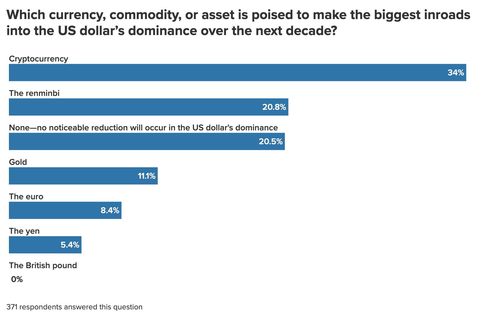 It’s clear that most respondents believe that China is poised to unseat the United States as the global economic superpower over the next ten years, challenging the United States on multiple fronts from currency to international institutions to political stability.