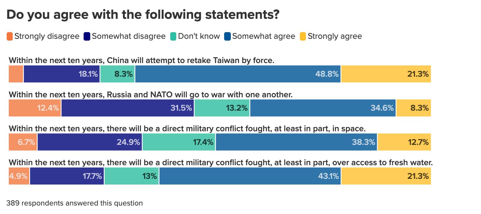 MOST RESPONDENTS THINK CHINA WILL SURPASS THE US ECONOMICALLY, AS CONCERN ABOUT A TAIWAN CONFLICT RISES AND 40 PERCENT FORESEE ANOTHER WORLD WAR