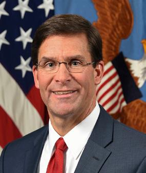 The Honorable Mark T. Esper is a partner and board member of the venture capital firm Red Cell Partners and a board director at the Atlantic Council. He was sworn in as the 27th Secretary of Defense on July 23, 2019, and served in that capacity until November 9, 2020. He previously served as acting secretary of defense from June 24, 2019, to July 15, 2019. Esper was confirmed as the 23rd secretary of the US Army in November 2017.