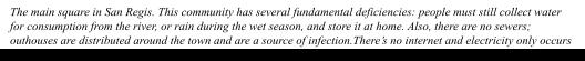 In contrast, the community of San Regis is affected by its remote location, since limited transportation options make access to any secondary health center difficult or impossible Also, it lacks adequate facilities, its health center is understaffed and a significant number of villagers live in extreme poverty Yet, services are acceptable and people respect and trust local health personnel, possibly because they perceive an overwhelming sense of abandonment and are, therefore, grateful for any service they can get access to The need for primary prevention is additionally important given the community’s remoteness. Health literacy, in general, is a major issue, but due to the positive rapport between health workers and the population, this could be addressed more easily in San Regis than in other communities.