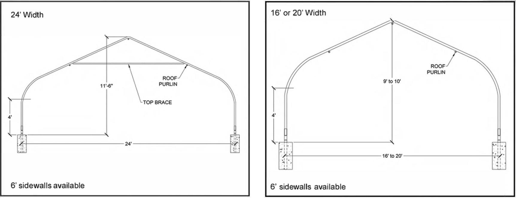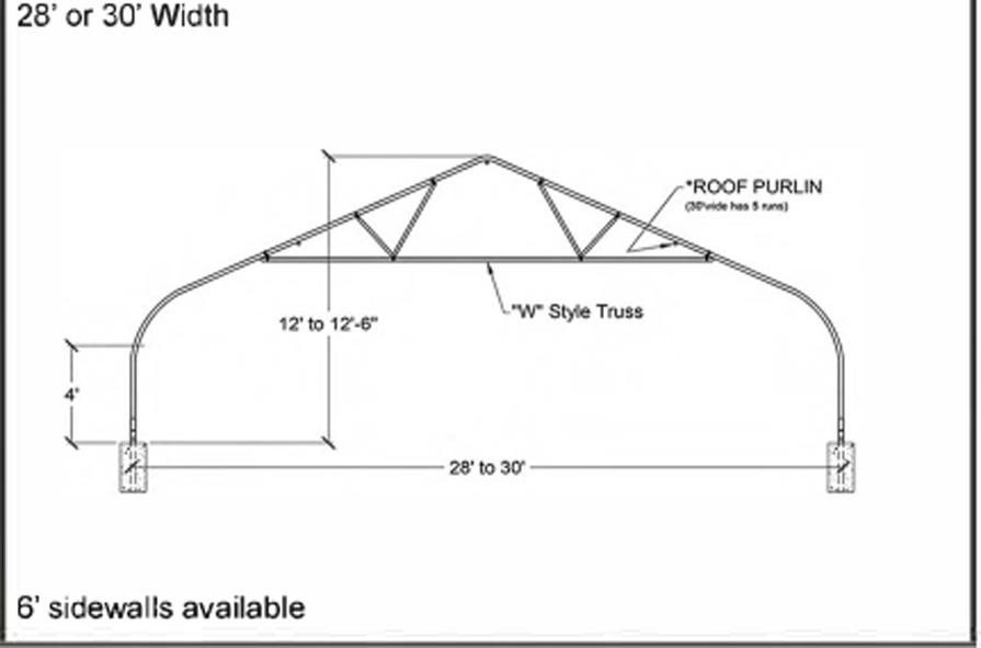 Foundation options shown in this manual are for illustration purposes only and are intended to assist with the layout for posts and may not be suitable for Purchaser’s structure. Soil types and densities vary from location to location, even within a specific locale. Different foundation requirements will be based on Purchaser’s specific soil conditions, post spacing, wind loads, snow loads, etc. Seller can provide, upon request, engineering calculations to assist in determining foundation requirements with a local engineer for Purchaser’s structure based on local code requirements. It is the responsibility of Purchaser to obtain all necessary local code information and to inform Seller of the required loads for the county, as well as obtaining any permits which will be necessary. Unless otherwise agreed to in writing by the parties, it is the responsibility of the Purchaser to install this structure on an adequate foundation designed to meet local building codes. Structures using post-in-ground are required to set posts according to foundation design. All structures must have posts set in 3000 PSI commercial grade concrete. Failure to strictly adhere to buildings codes, the requirements set forth in this Agreement or the installation manual shall void all warranties.