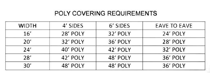Maintain the poly covering to have a snug or almost tight fit year-round, it will expand, or contract based on changing temperatures and wind. Poly must not sag between framing members – failure to do so may result in pocketing of rain/snow which can cause serious damage or structural failure.