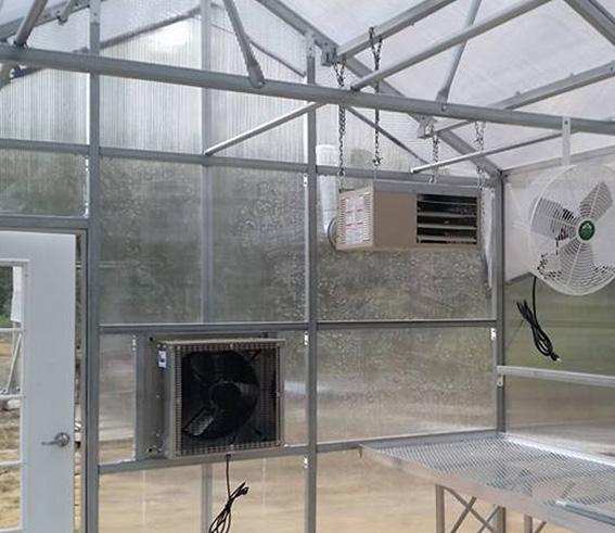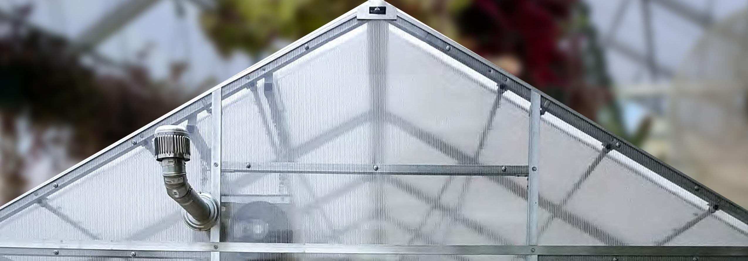 The ultimate greenhouse for the serious hobby grower, the Scholar is covered with commercial grade 8mm twinwall polycarbonate, with a 10-year warranty and 15-20 year life expectancy. Available in either 12’ or 16’ width, any length in 6’ increments, and a standard sidewall height of 5’-8’, this package includes a 2”x 2” square galvanized steel frame, aluminum extrusions, glass doors and mechanical ventilation.