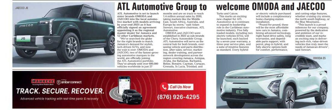 Press release published in the Jamaica Observer announcing ATL Automotive’s introduction of OMODA and JAECOO to the Jamaican market. The piece highlights the brands’ global growth, innovative right-hand drive SUVs, and ATL Automotive’s commitment to style, technology, and value for Jamaican drivers.