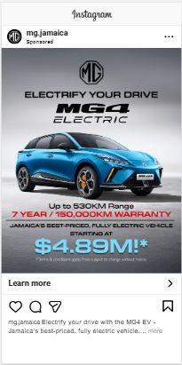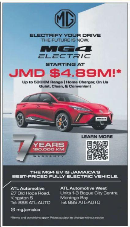 MG 4 EV strip ad (Jamaica Observer) and Auto Classifieds Solus (Sunday Gleaner) published in September.