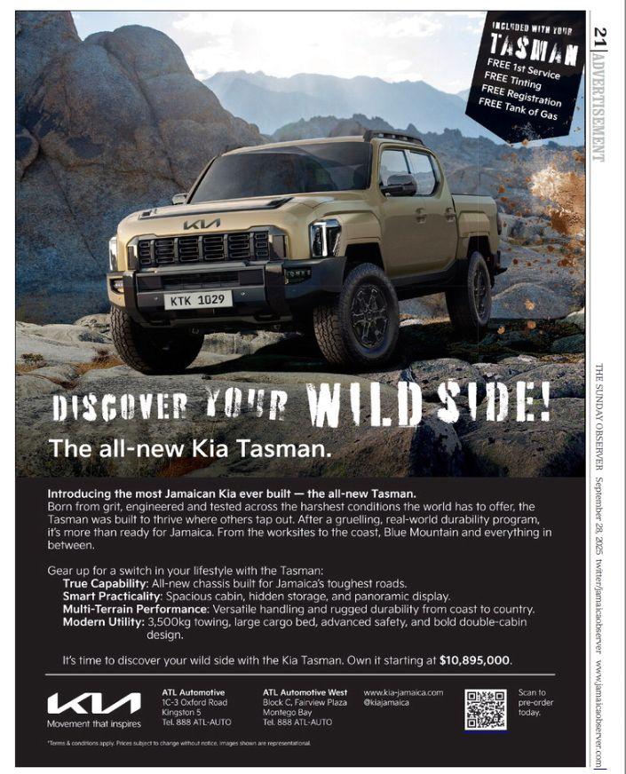 ● Press release published on OURToday (Sunday, September 28, 2025) announcing ATL Automotive’s upcoming launch of the Kia Tasman in Jamaica.