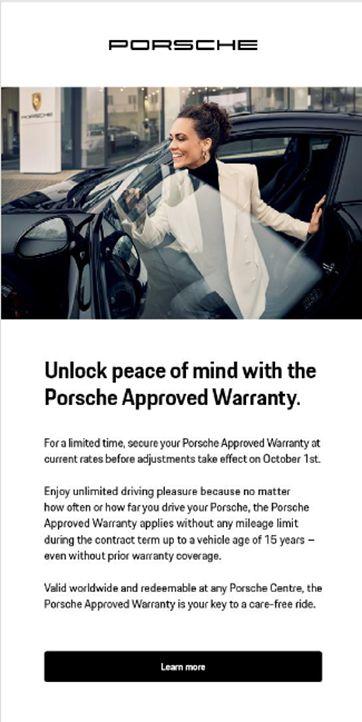 Prospects and existing customers were made aware of the pending premium increase in the Approved Warranty program.
