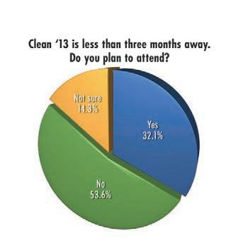 Just shy of one-third of those responding to April’s American Coin-Op Wire survey say they are planning to attend Clean ’13 in New Orleans, while another 14.3% are unsure at this point.