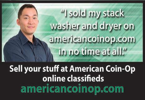 Looking to seLL some used equipment? ContaCt CLassified saLes 30 AmericAn coin-op august 2013 www.americancoinop.com classifieds www.AmericanCoinOp.com Computer Boards Computer Boards s old r epaired Timers and Ignitors Repaired!!! New Touch Pads for S/Q Dryers, S.C. Washers, Dexter Stack s uper Computer Boards 14340 Bolsa Chica Road #I, Westminster, CA 92683 (877) 870-5553 • ( 714) 377-9753 dexter, adC, speed Queen, ipso, Wascomat, unimac, primus & more (Lowest Prices in the U.S.) Hundreds of Computer Boards for Sale!!! >>>>>>> >>>>>>> & eQuIpmeNt WaNted WASCOMAT WASHERS & WASCOMAT DRYERS 704-592-2022. WILL BUY ANY EQUIPMENT (WASHERS AND DRYERS) ON WEST COAST. 888-205-0884. eQuIpmeNt For sale eleCtroNIC repaIrs Repair Front Load WASHER Bearings. Call Tony P. 516-805-4193 eQuIpmeNt repaIrs eQuIpmeNt For sale www.greatlakeslaundry.com NEED PARTS? Call US First! SAVE $$$$ Check us out online for Specials • Maytag • Whirlpool • Bock • Wascomat • Hamilton Heaters • R&B Carts • American Dryer • Electrolux • ESD • Greenwald • Standard • Vend-Rite • Continental Girbau • Soap & MORE Brookfield, WI 1-800-236-5599 Troy, MI 1-888-492-0181 Wyoming, MI 1-800-821-8846 Dayton, OH 1-888-877-4382 Indianapolis, IN 1-800-577-7103 www.facebook.com/ greatlakeslaundry parts For sale Buying coin washer/dryer routes in the Southwest region. Call Rod at 800-729-8434 x135 Complete package for 1800 sq ft of not so used, Wascomat stainless washers and ADC dryers in Charlotte, NC for less than half of half price of new equipment. Call Charles 704-904-1464. VENDING MACHINE SALES—Nationwide. In business since 1960. Machines, coin changers, soap venders bulk. Place machines near your business & grow. 100% Financing. Call the rest, then call the best. Phone or Fax 800-211-1066, 800-917-VEND. www.vendingpriceline.com BusINess opportuNItIes