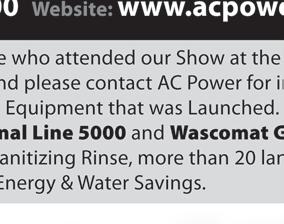 Andy Marcionetti P.O. Box 501 Ripon, WI 54971 Ph: 800/845-3903 E-mail: andy@ laundryconcepts.com Equipment and supplies