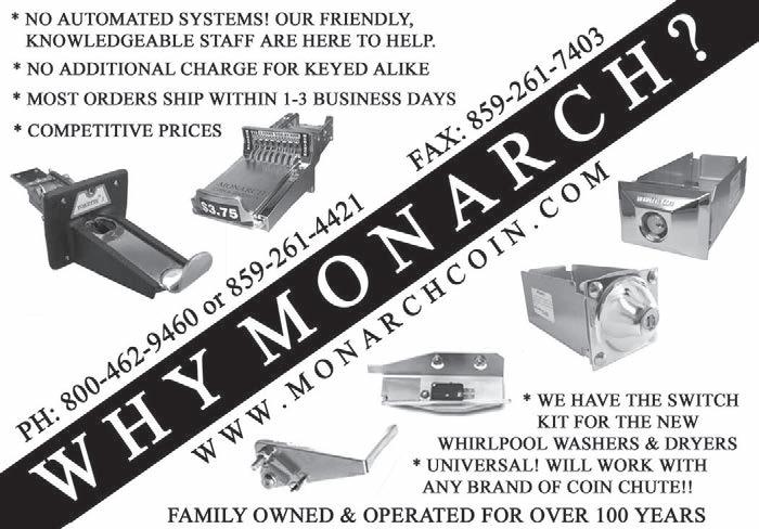 Companies known to distribute self-service laundry equipment and/or supplies were invited to be listed in this directory. Those that responded to the request are listed. Listings run through page 30. Check AmericanCoinOp.com throughout the year for updates and additions.