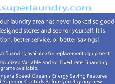 “Our goal for the website is to provide individuals interested in opening a small business with all the information they need to make an informed decision,” says Dan Bowe, Speed Queen national sales manager. “With an average return on investment up to 35%, investing in Laundromats proves to be nearly recessionproof because the business is not strongly tied to the fluctuating economy—clean laundry is a necessity.”